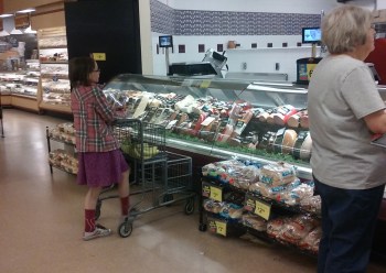She is standing by the clear glass display and browsing the various meats. There are two women standing nearby, but after a moment it becomes clear that the girl is … Continue reading