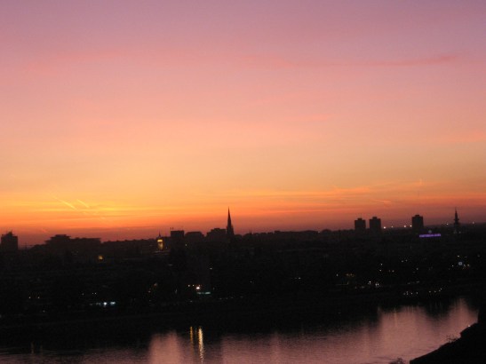 We climb up slowly. They grow quiet as the sun sets. The city lights up. To avoid melancholy, someone begins a series of jokes in Serbian. I catch the name “Chuck Norris,” pleasantly surprised to hear him as an international joke protagonist. As they explode in laughter, they also offer attempts to fill me in, tough as it is to translate humor. Yet, I prefer the jokes as they tell them, “Chuck Norris drowns the sea.” Or, “Chuck Norris gets in the bus and the controller pays the ticket.”
