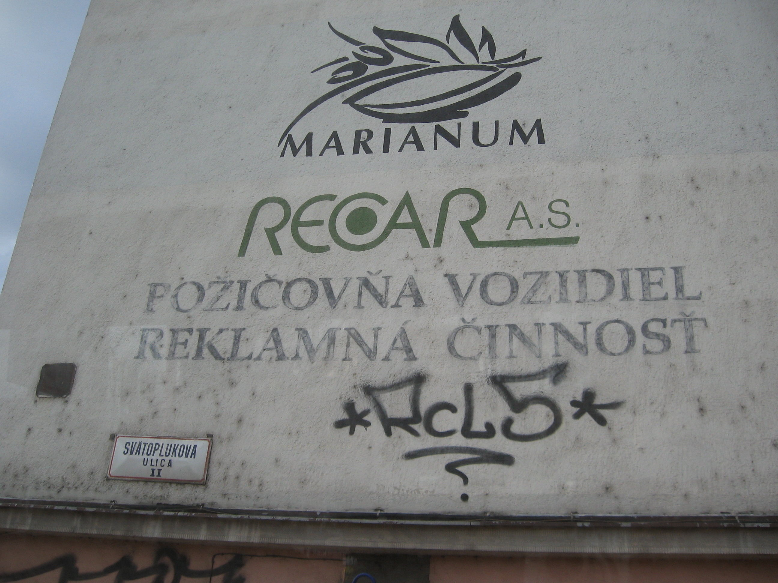 Bus and tram trip from the airport through Prague. An old Army barracks being renovated into a mall, a KFC. Lots of graffiti, signs–I see them and the words mean nothing.