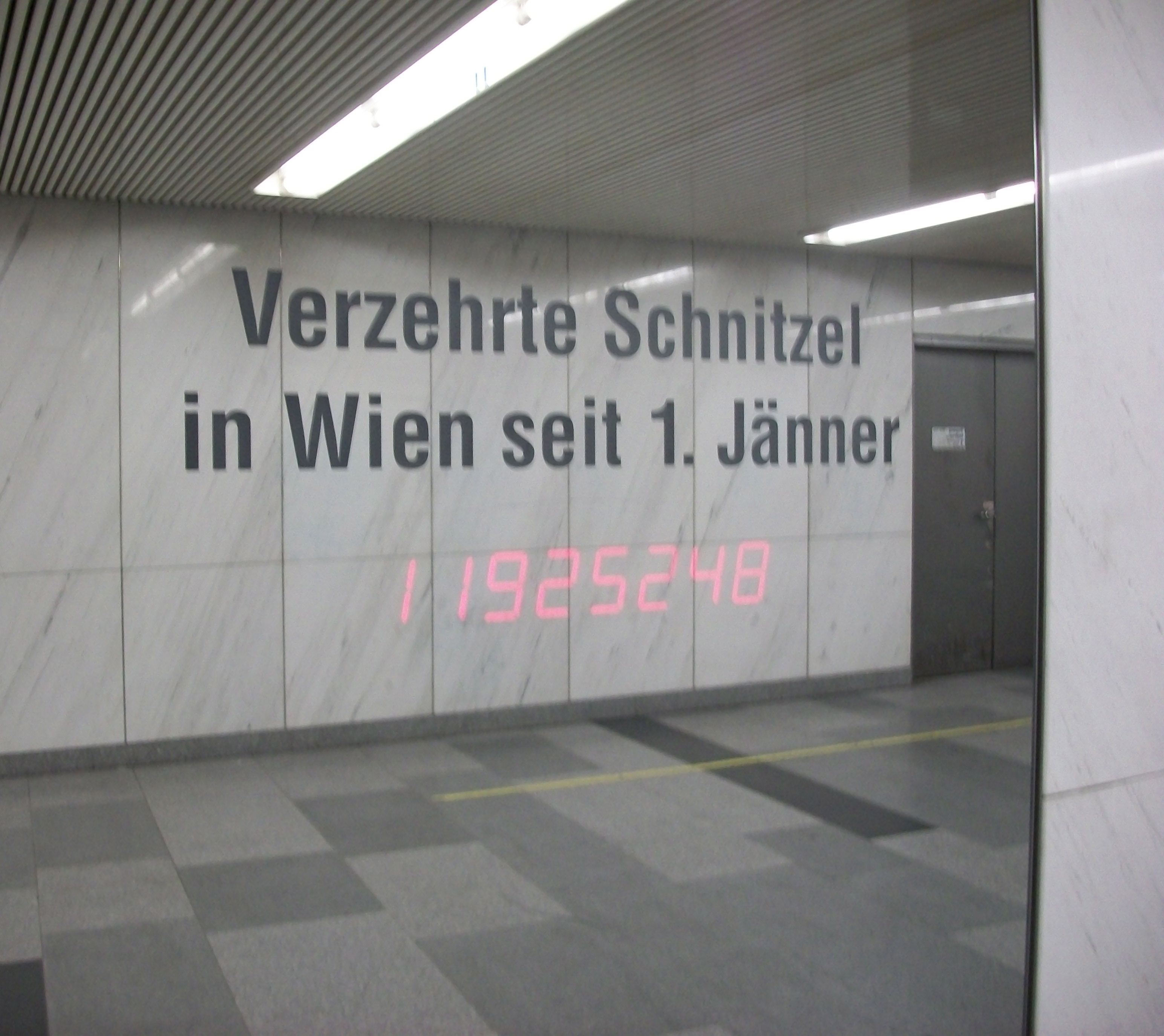 • Close! Schnitzels consumed in Vienna since Jan 1! The whole passageway has various figures and a listing of all the numbers in Pi. 🙂
