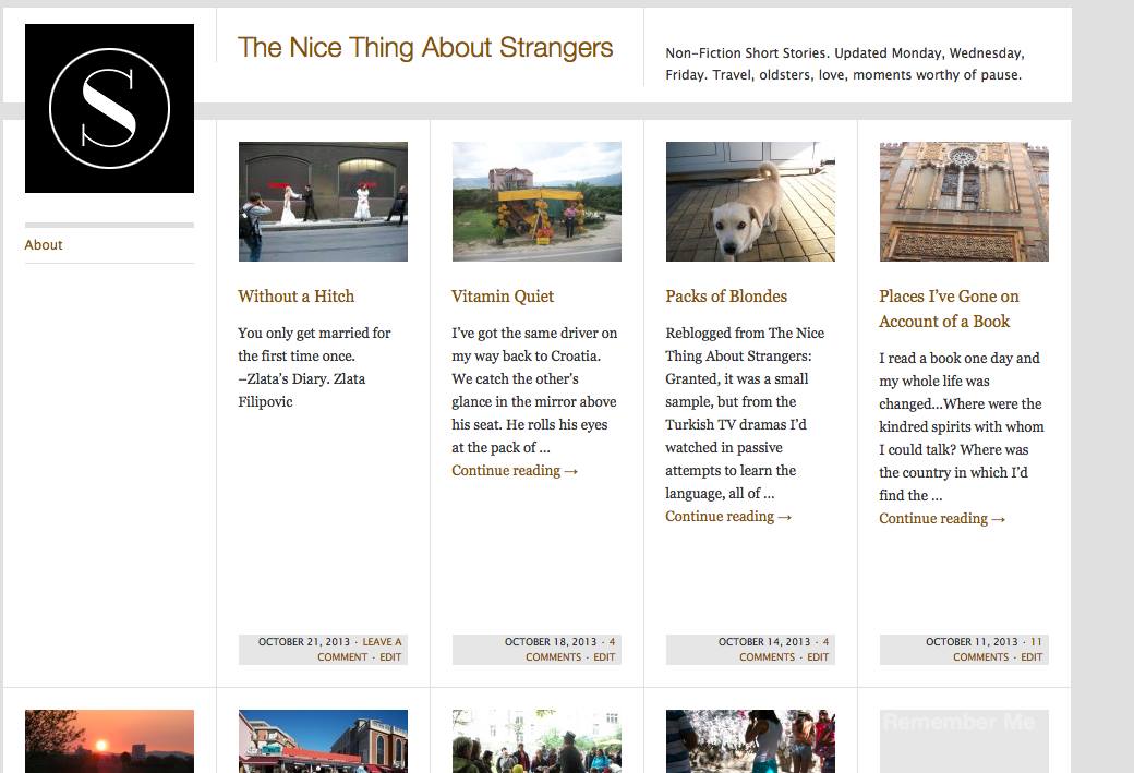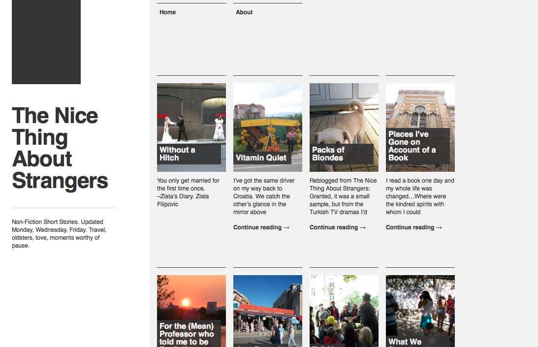 This week I realized that The Nice Thing About Strangers has been up and running for just over two years. Glory! I started this project hoping to get some use out of my notebooks full of random travel scenes, in hopes of giving myself a few deadlines, and in order to send some Nice Things back into the universe. Writing the blog has been more delightful than I ever expected.