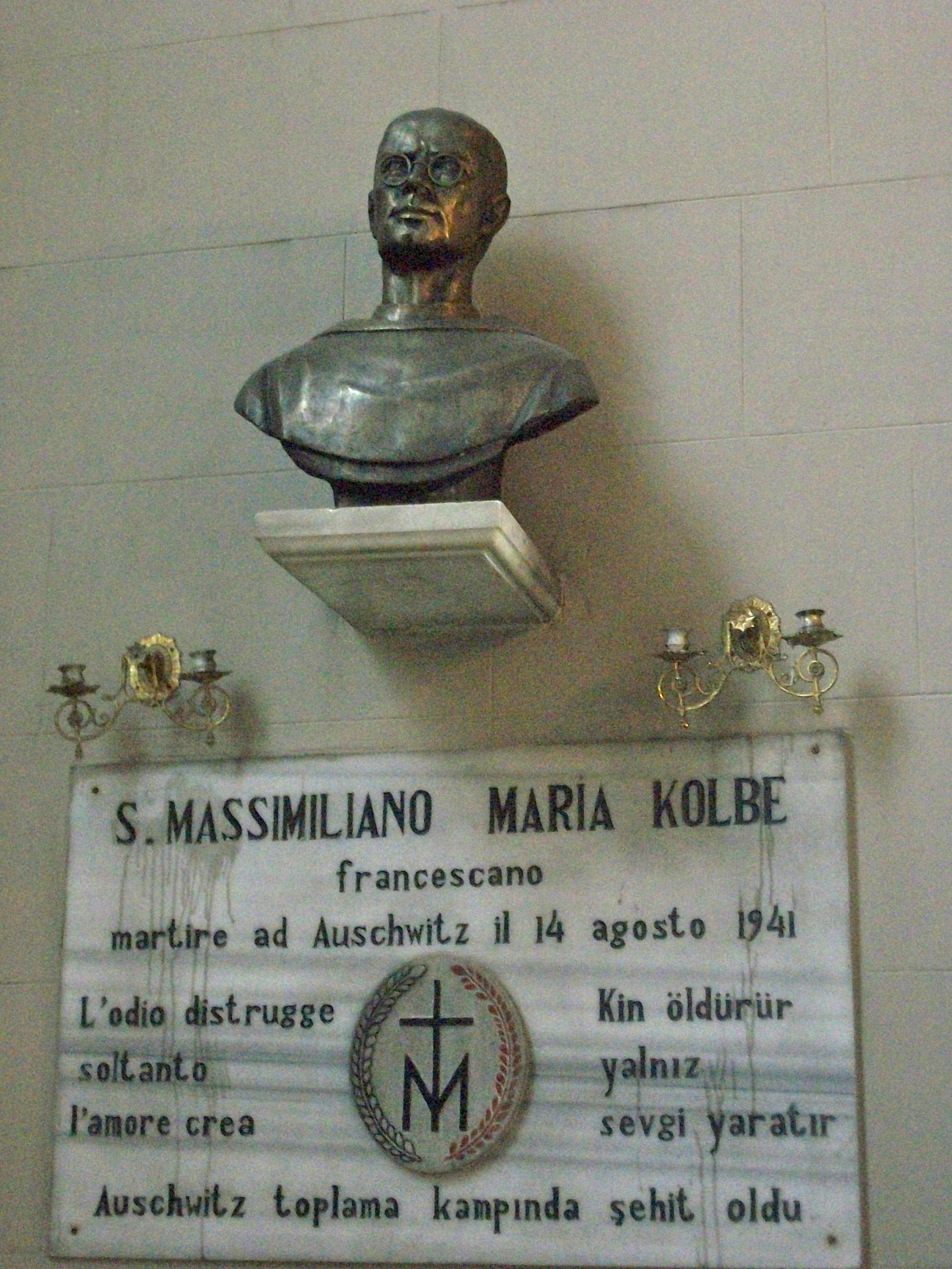 So I come here every time I am in Istanbul, even for just a few prayers. I enjoy the reverence of the likely-not-Catholic visitors. I love watching them look upward. I blink slowly with people striking a pose in front of the bust of St. Maximilian Kolbe, the Divine Mercy image, the large photo of Pope Francis. I am far from home, but close to the familiar artifacts of my upbringing, and wearing my smile as my uniform I am always where I belong.