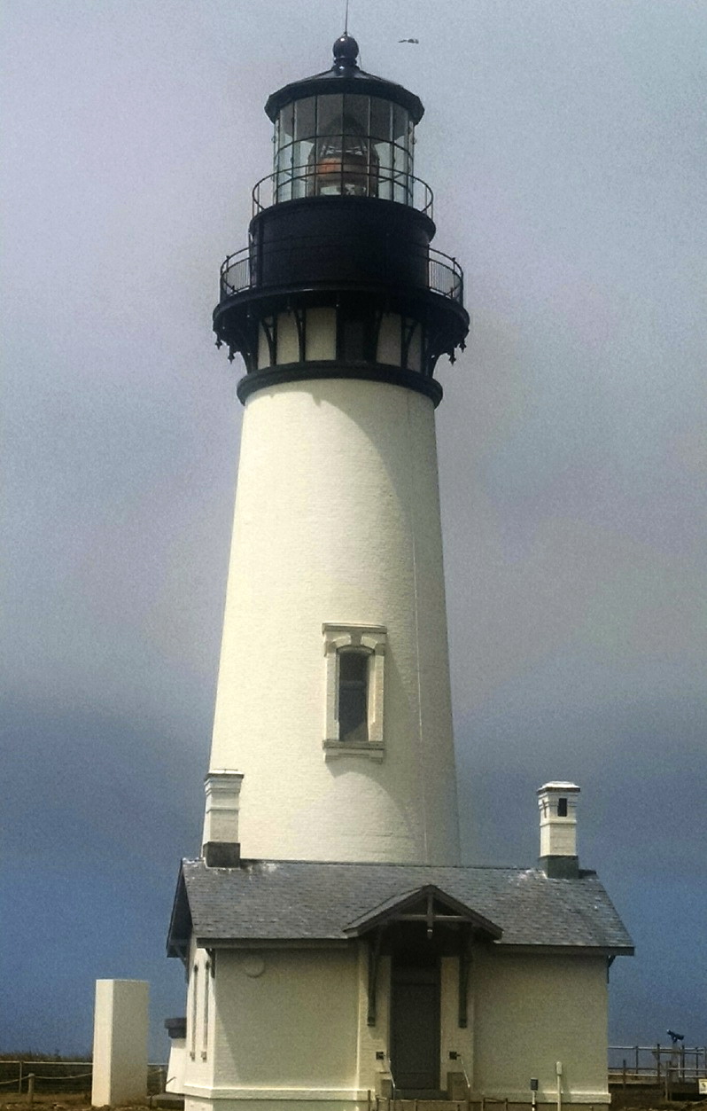Before taking the lighthouse tour, visitors loiter at the Interpretive Center. A family with four children waits for the 1 pm tour. In the meantime, they explore the exhibits and watch a video highlighting the history of the Yaquina Head Outstanding Natural Area. The title sounds like an oversell, but it’s a lovely location.
