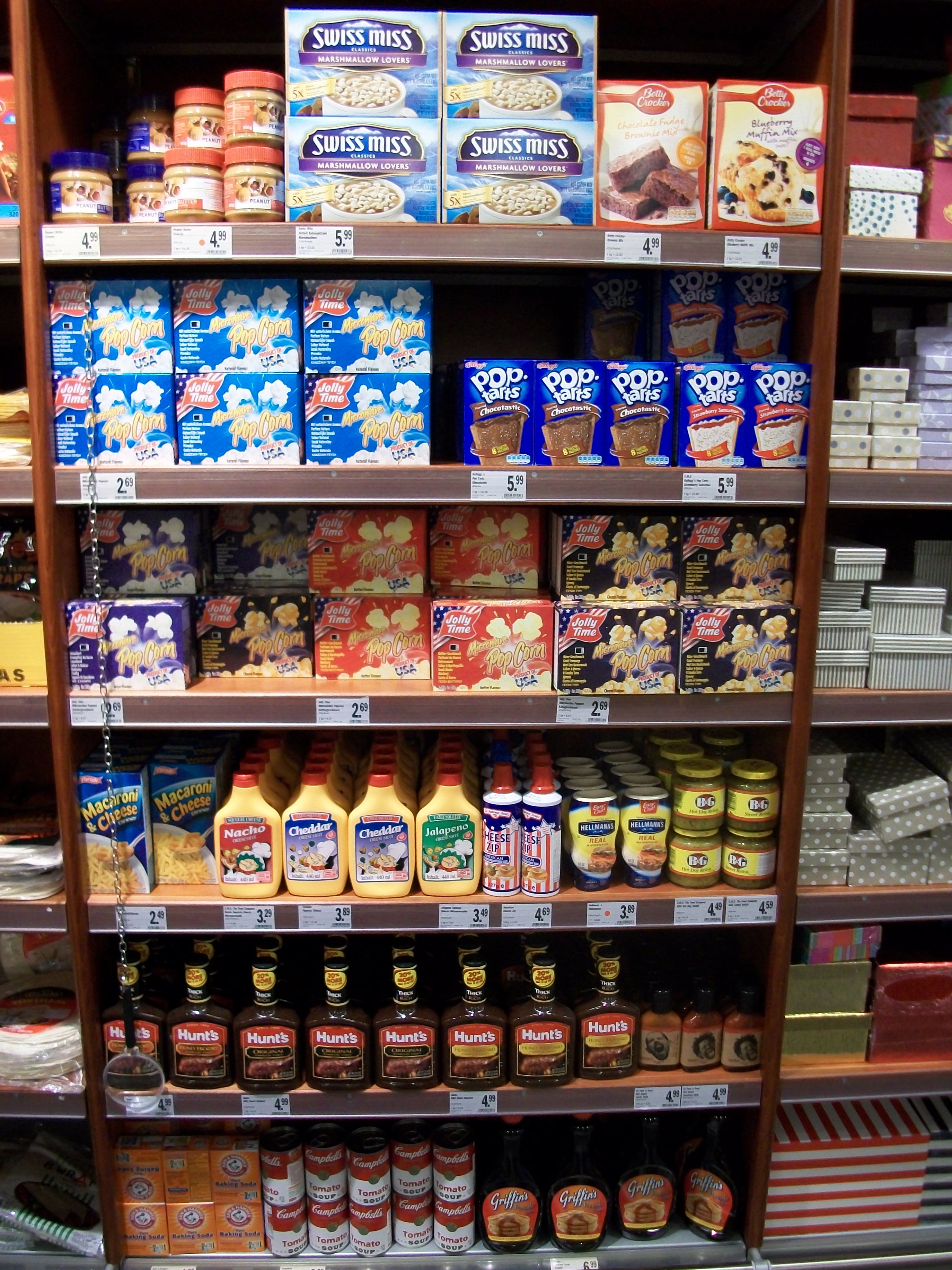 The “American Food” section in a German grocery store.