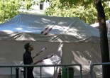Is it raining? At an outdoor café in Novi Sad under an expansive web of umbrella-like-awnings, I wait for a slice of…